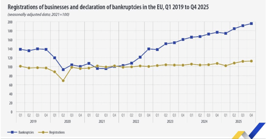Podľa aktuálnych údajov z Eurostatu vzrástol počet bankrotov oproti plandemickému obdobiu až o 100 percent.