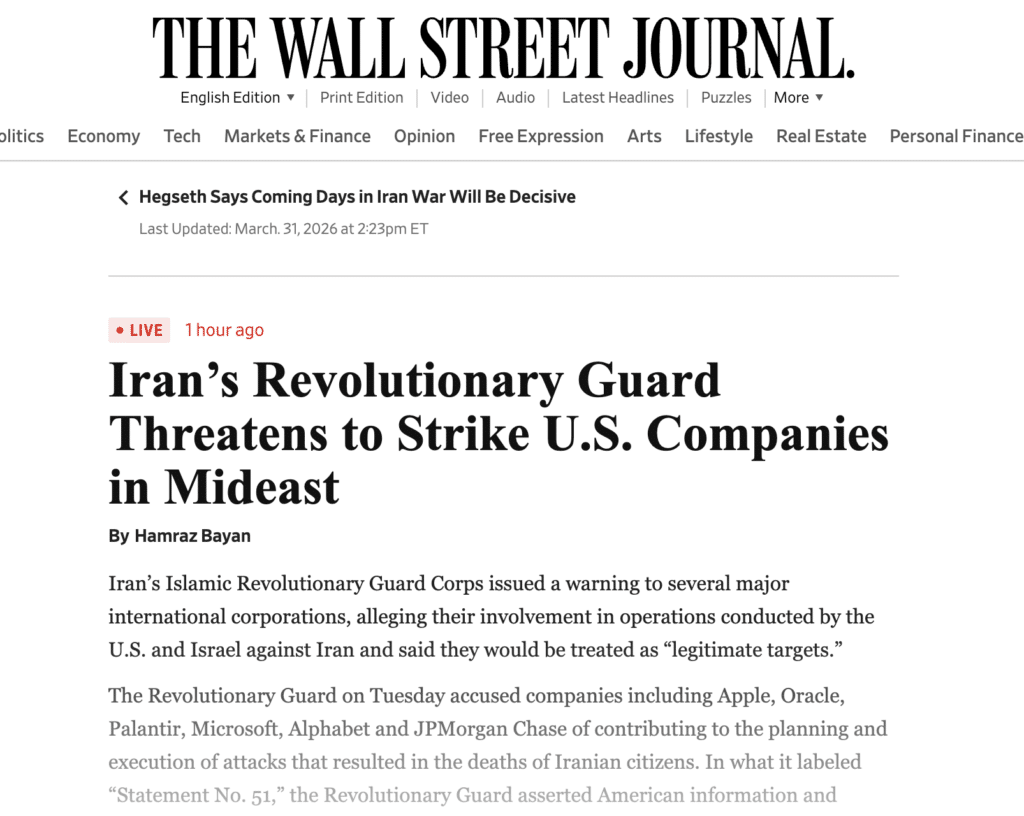 No a aby toho na jeden deň nebolo málo, Irán zverejnil zoznam firiem, na ktoré plánuje zaútočiť v okruhu dosahu ich rakiet (cca 2000 km). Začať by mali na deň bláznov.