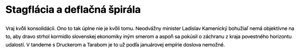 Pre mňa je to signál, že vypracovanie vízie nového daňového a odvodového systému pre SR neznesie odklad. Už ale nič nezachránime. Musíme padnúť na dno a zhorieť. Horizont udalostí bol prekročený. Mrzí ma to. Najhoršie je, že ani tzv. opozícia nemá žiaden lepší konkrétny plán, len reči.